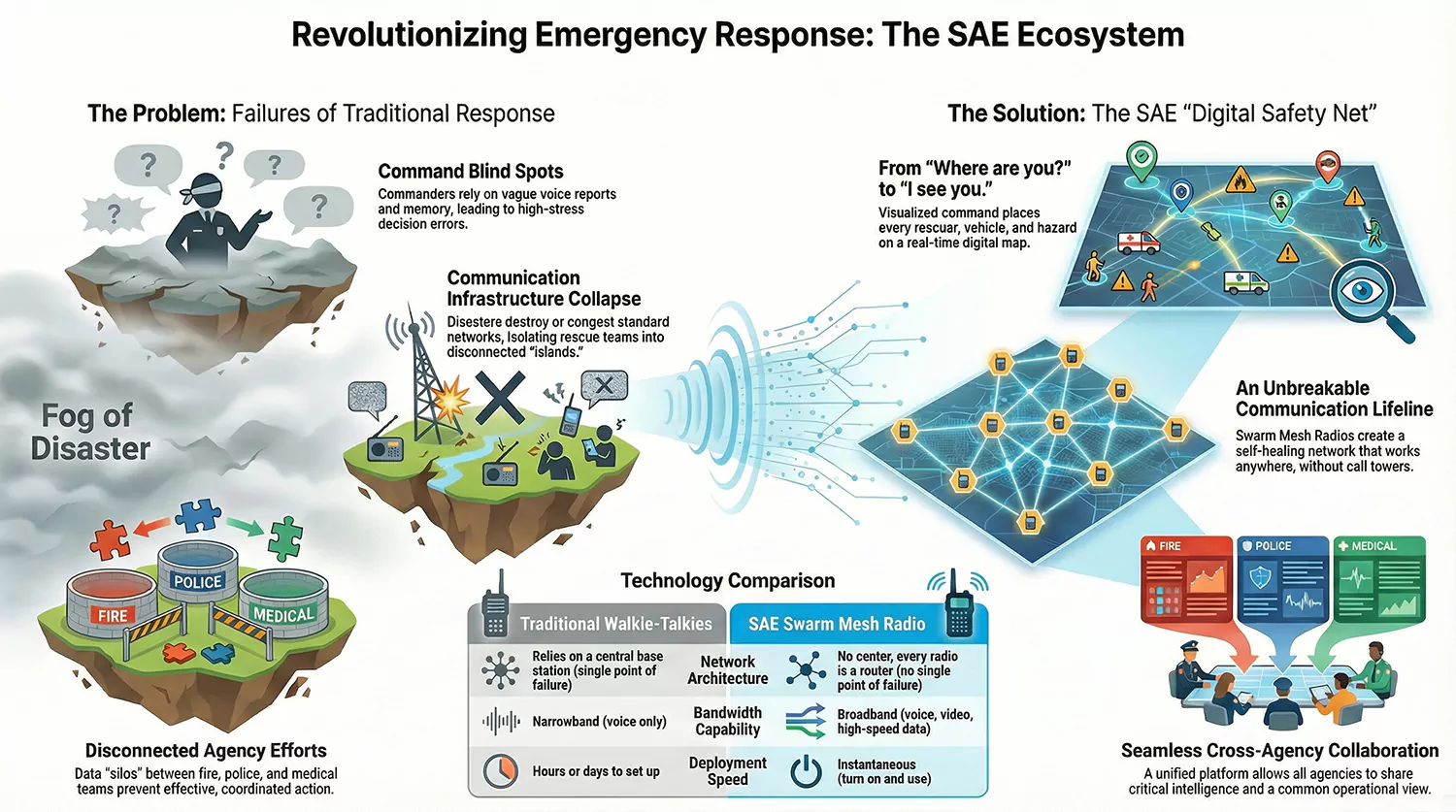 Traditional emergency equipment operates in isolation.